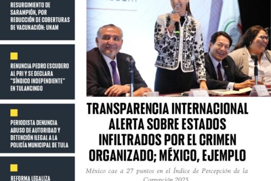 - Transparencia Internacional alerta sobre Estados infiltrados por el crimen organizado; México, ejemplo.