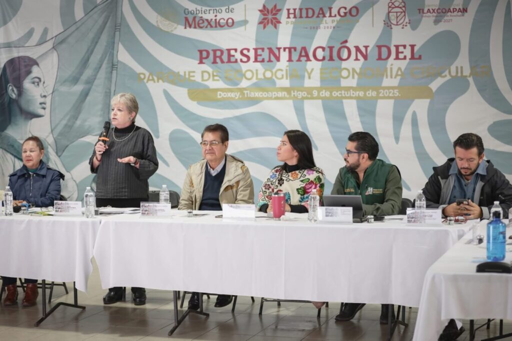 La secretaria de Medio Ambiente y Recursos Naturales del Gobierno federal, Alicia Bárcena, aseguró, durante el Diálogo con la sociedad civil de la comunidad de Doxey, en Tlaxcoapan, que si la población no quiere el Parque de Economía Circular se lo llevarán a otro estado.