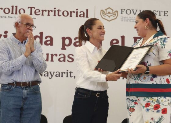 Durante su gira por el estado de Nayarit, la presidenta de México, Claudia Sheinbaum Pardo, encabezó un evento de entrega…