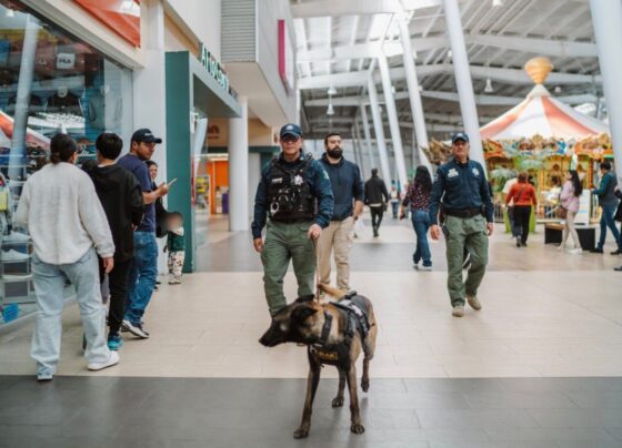 Fortalecen binomios K9 y policía municipal la seguridad en plazas comerciales de Pachuca