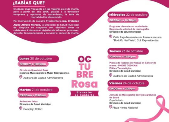En el marco del Día Internacional de Lucha contra el Cáncer de Mama, el gobierno municipal de Tizayuca realizará diversas…