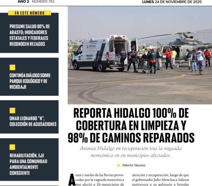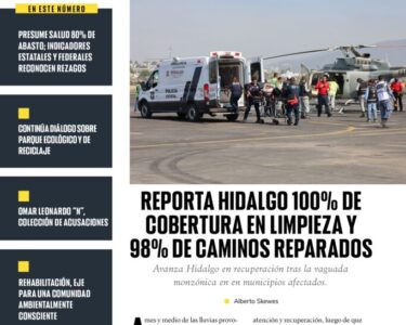 Avanza Hidalgo en recuperación tras la vaguada monzónica en en municipios afectados. A mes y medio de las lluvias provocadas por la vaguada monzónica que afectó a 28 municipios de Hidalgo, el gobierno estatal presentó una actualización de avances en atención y recuperación, luego de que el gobernador Julio Menchaca Salazar instruyera a su gabinete […]