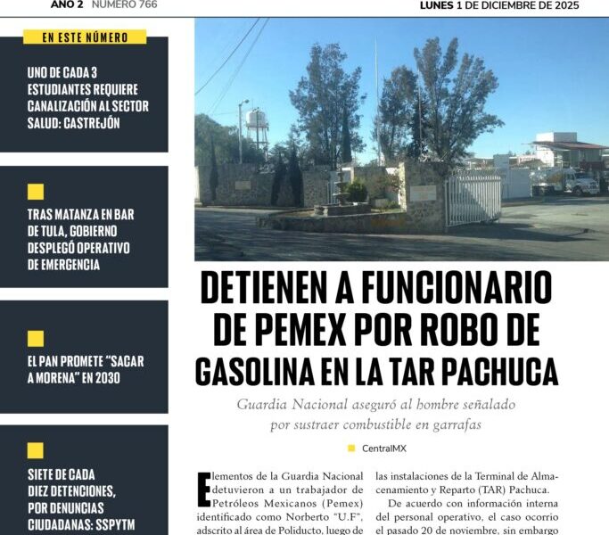 🧙🏻♀️ Roban gasolina ¡dentro de Pemex! En Pachuca. 🧙🏻♀️ Grilla por nepotismo en Tulancingo. 🧙🏻♀️La matanza en Tula. 🧙🏻♀️ Roban gasolina ¡dentro de Pemex! En Pachuca. Y no, no es el huachicol fiscal de los altos mandos, este es más humilde pero también ilegal. La Guardia Nacional detuvo a Norberto “U.F.”, trabajador de Pemex —Poliducto—, […]