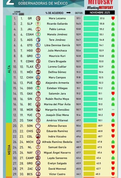Hidalgo destaca en el ranking Mitofsky mientras la media de gobernadores se estanca. La encuestadora Mitofsky dio a conocer el Ranking de Gobernadores correspondiente a noviembre de 2025, el cual muestra una aprobación promedio nacional cercana al 50 por ciento, con un comportamiento estable respecto a los meses previos. De acuerdo con la medición —publicada […]