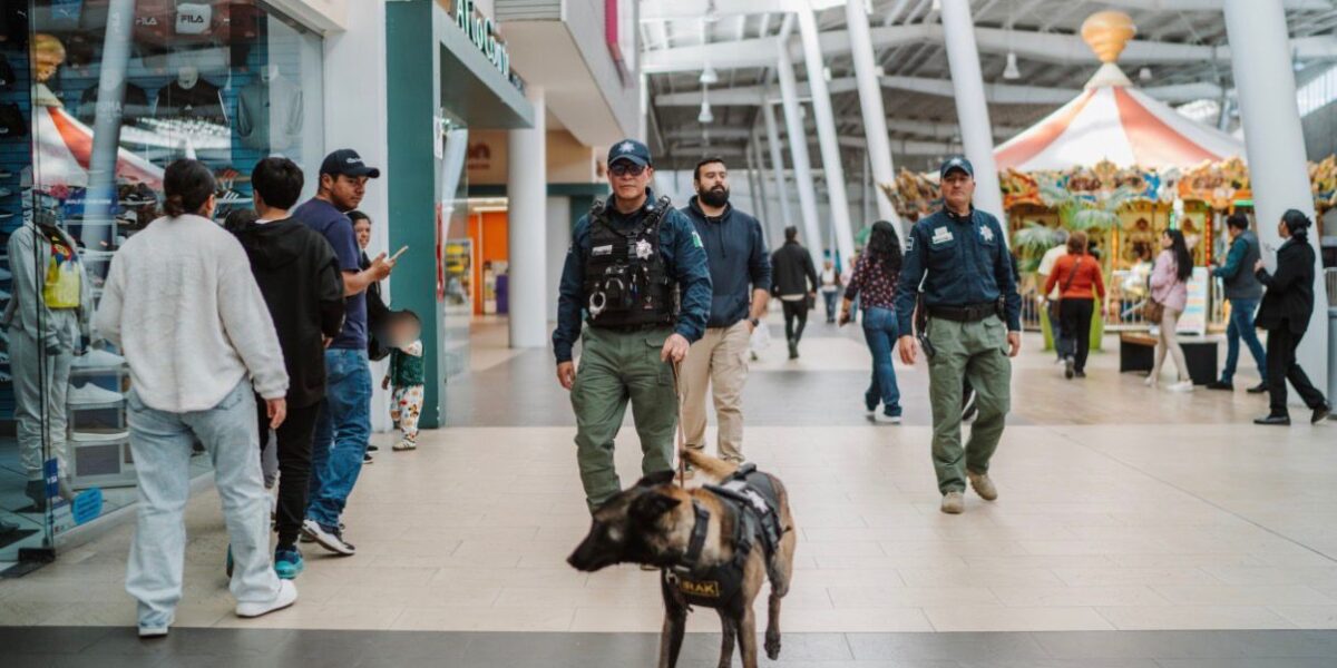 Fortalecen binomios K9 y policía municipal la seguridad en plazas comerciales de Pachuca