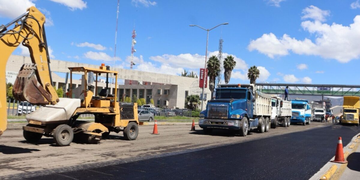 Trabajos de pavimentación en Avenida Universidad y Bulevar Felipe Ángeles