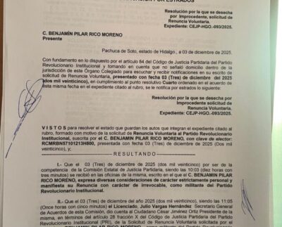PRI determina “improcedente la renuncia voluntaria” de Benjamín Rico