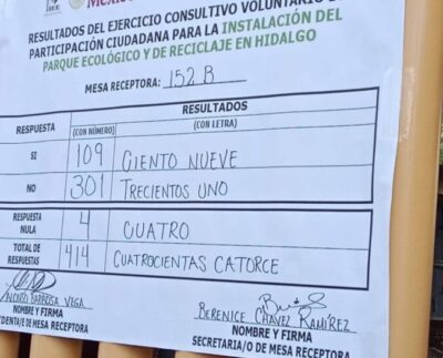 Consulta sobre Parque Ecológico en Hidalgo arroja mayoría por el “No” y baja participación
