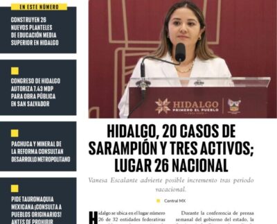 Vanesa Escalante advierte posible incremento tras periodo vacacional Hidalgo se ubica en el lugar número 26 de 32 entidades federativas con 20 casos de sarampión, de…