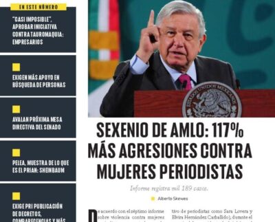 Sexenio de AMLO: 117% más agresiones contra mujeres periodistas.