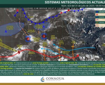 Temperaturas máximas de 30 a 35 °C en el norte del estado. La onda tropical núm. 17 se desplazará sobre…
