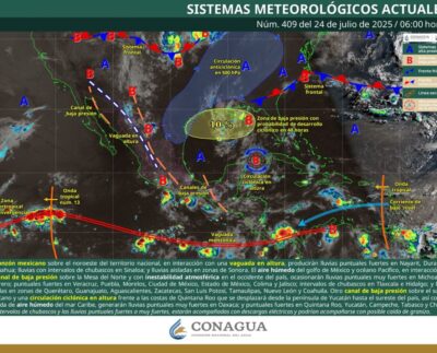 Temperaturas máximas de 30 a 35 °C en el norte del estado. El monzón mexicano persistirá sobre el noroeste del…