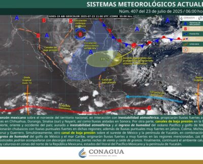 Temperaturas máximas de 30 a 35 °C en el norte del estado. El monzón mexicano sobre el noroeste del territorio…