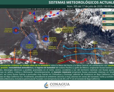 Viento de 10 a 20 km/h con rachas de 30 a 50 km/h en el estado Una circulación ciclónica en…