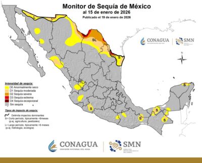 Solo el 7.4% de la superficie del país registra sequía de moderada a excepcional Con base en el más reciente…