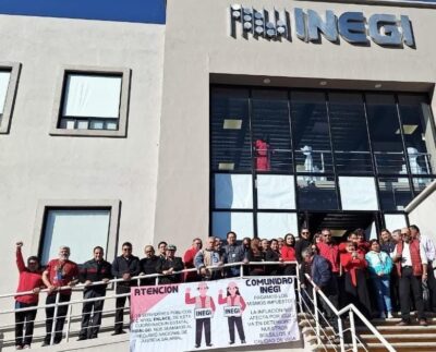 Por exclusión en aumento salarial. Personal de Enlace del Instituto Nacional de Estadística y Geografía (INEGI) protestó este martes en…
