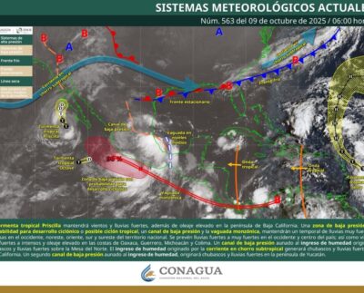 Viento de 30 a 40 km/h con rachas de 50 a 70 km/h en el estado La tormenta tropical Priscilla…