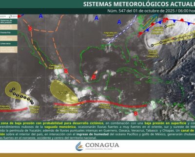 Temperaturas máximas de 30 a 35 °C en el norte del estado La onda tropical núm. 35, fue absorbida por…