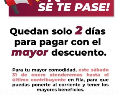 Últimos dos días para aprovechar el 25% de descuento en el Predial 2026 en Pachuca