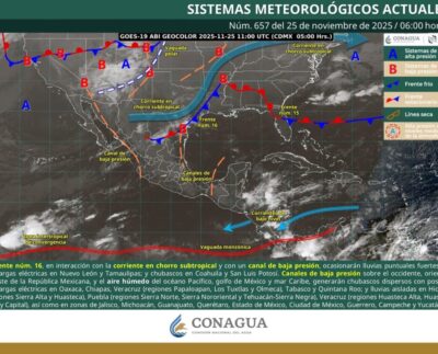 Temperaturas mínimas de 0 a 5 °C con posibles heladas en el estado. El frente núm. 16 se extenderá sobre…