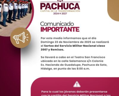 Se efectuará en el Teatro San Francisco, deberán presentarse a las 7:00 horas. El Ayuntamiento de Pachuca informa a la…