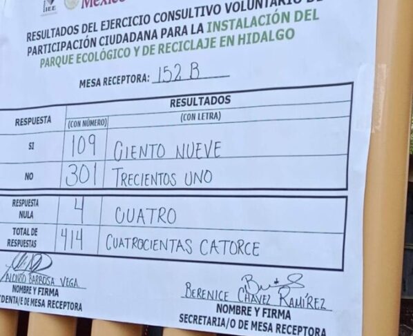 Consulta sobre Parque Ecológico en Hidalgo arroja mayoría por el “No” y baja participación