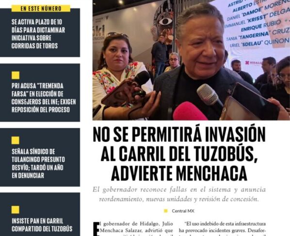 El gobernador reconoce fallas en el sistema y anuncia reordenamiento, nuevas unidades y revisión de concesión. El gobernador de Hidalgo, Julio Menchaca Salazar, advirtió que no se permitirá la invasión al carril confinado del Tuzobús, luego de que esta práctica ha derivado en accidentes, incluso con…