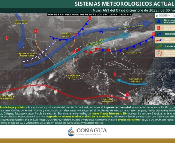 El Servicio Meteorológico Nacional (SMN) de la Conagua alertó que este fin de semana se registrarán chubascos con lluvias puntuales fuertes de 25 a 50 milímetros en las regiones Sierra…