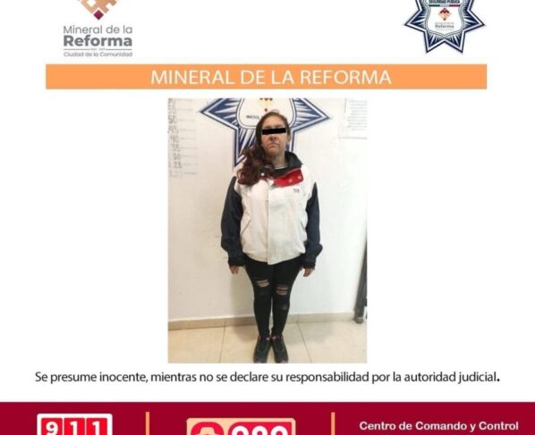 La mujer se identificó con las iniciales A. R. C., de 42 años de edad La Secretaría de Seguridad Pública de Mineral de la Reforma, dio a conocer la detención…