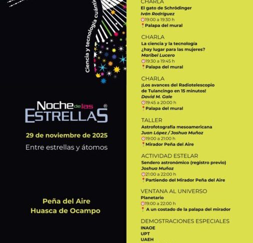 Las actividades se realizarán de 18:00 a 23:00 horas e incluirán charlas, talleres y planetario Huasca de Ocampo será sede de la “Noche de las Estrellas 2025” este sábado 29…