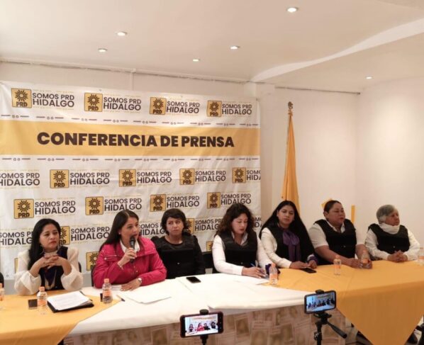 Mujeres del PRD Hidalgo protestan y exigen alerta de violencia de género.