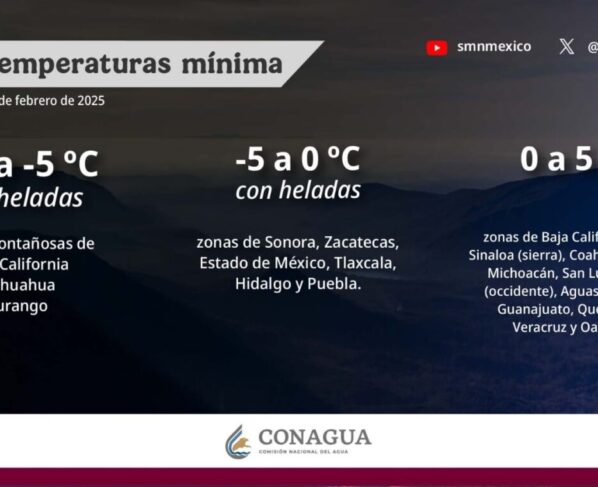 -Temperaturas mínimas de -5 a 0 °C con heladas en zonas del estado. Una vaguada en niveles altos de la atmósfera se extenderá sobre el noroeste del país, interaccionará con…