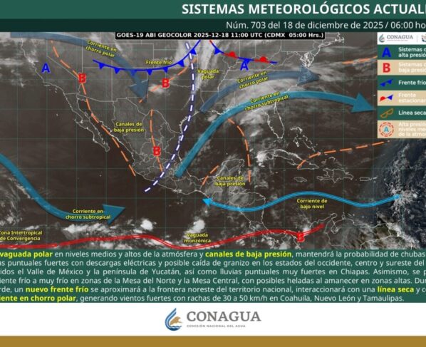 Prevén temperaturas mínimas de 0 a 5 °C en el estado Una vaguada polar en niveles medios y altos de la atmósfera y canales de baja presión en el interior…