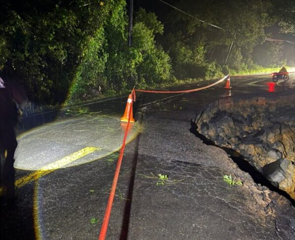 La longitud del tramo colapsado es de 30 metros, ocupando tres cuartos del ancho de corona de la carretera (aproximadamente siete metros) y por colapsar, se estiman otros 30 metros…