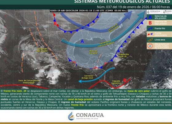Los bancos de niebla podrían reducir la visibilidad en tramos carreteros y zonas urbanas El frente frío núm. 29 se…