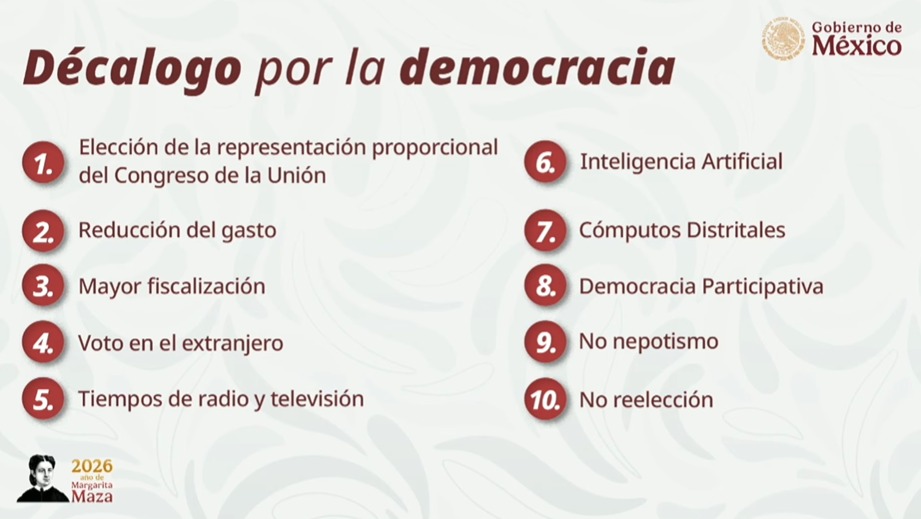Con error ortográfico, presenta Sheinbaum el “decálogo” de la reforma electoral.