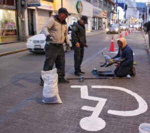 Como parte de la primera etapa de intervención, se realizaron trabajos en la calle Guerrero, en el tramo comprendido entre C. Doria y Guadalupe Victoria, donde se efectuó el marcaje de 22 cajones de estacionamiento para vehículos particulares, tres espacios destinados a personas con discapacidad y nueve cajones para motocicletas.