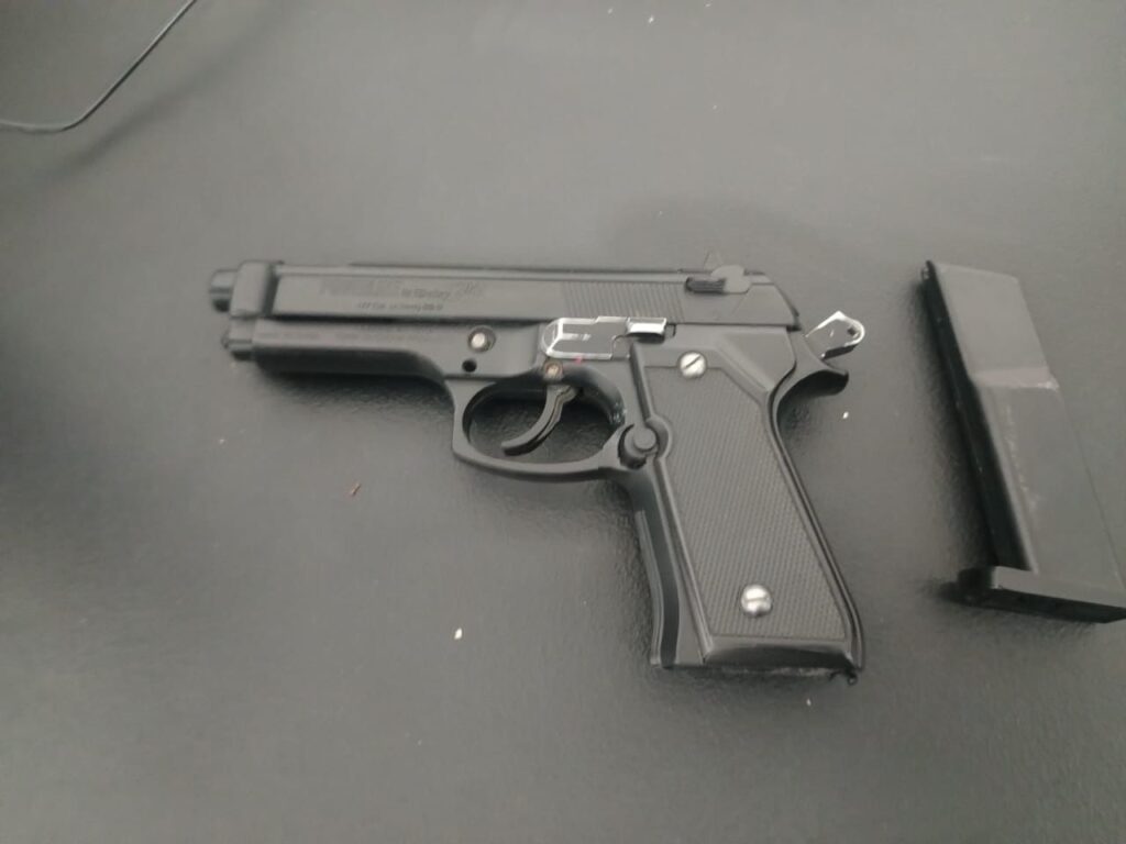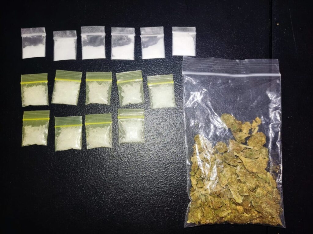 El detenido fue identificado con las iniciales O. E. M. Al realizarle una inspección preventiva, se le encontró en posesión de una réplica de arma de fuego, 6 dosis de cocaína, 9 dosis de cristal y una bolsa de marihuana.