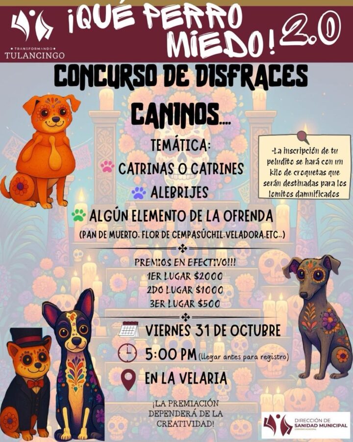 El ayuntamiento informó que hay más actividades en la “Fiesta de los Muertos Tulancingo 2025”, tal es el caso del concurso “Que Perro Miedo 2.0”, ahora con sede en la velaría del jardín La Floresta.