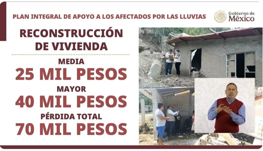 Para Hidalgo, en cambio, no se ha definido aún la fecha exacta de entrega de los apoyos, a pesar de que ya se tiene el registro de poco más de cinco mil viviendas afectadas.