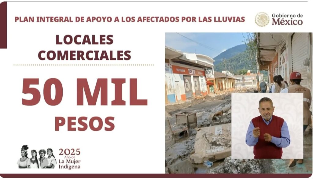 Asimismo, locales comerciales afectados recibirán un apoyo único de 50 mil pesos.