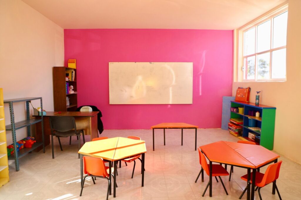 Los trabajos contemplaron una intervención integral en ambos inmuebles para garantizar condiciones adecuadas de desarrollo. Entre las acciones realizadas destacan: aplanado con estuco, instalación eléctrica, plafones y pisos en salones; pintura general y colocación de cancelería en ventanas y puertas.