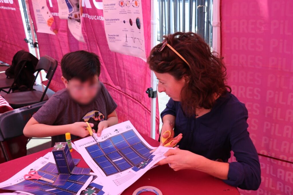 La oferta de actividades también incluyó el taller “Diseña tu propio traje de astronauta (ASTRYD)”, donde niñas, niños y personas adultas crearon indumentaria espacial mediante telas, colores y pinturas, promoviendo la creatividad, la expresión artística y la imaginación científica como herramientas de aprendizaje.