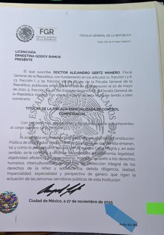 Pese a que se emitió una convocatoria por parte del Senado, el propio Gertz Manero designó a Ernestina Godoycomo encargada del despacho de la Fiscalía General de la República.