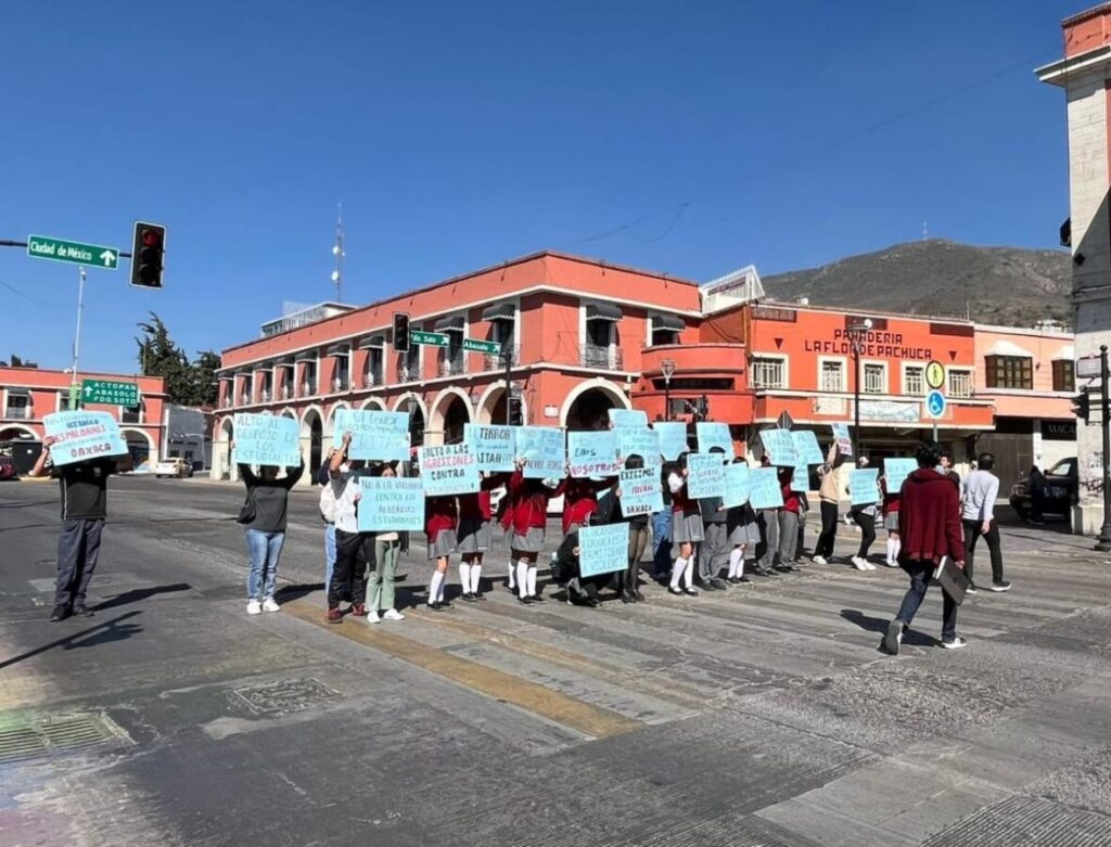 Ante los desalojos de 2 albergues estudiantiles en Oaxaca, los cuales “violan el derecho a la educación y a una vida digna de la juventud trabajadora”, la Federación de Estudiantes Revolucionarios Rafael Ramírez en Hidalgo (FNERRR) realizó una cadena humana en solidaridad con los estudiantes oaxaqueños afectados.