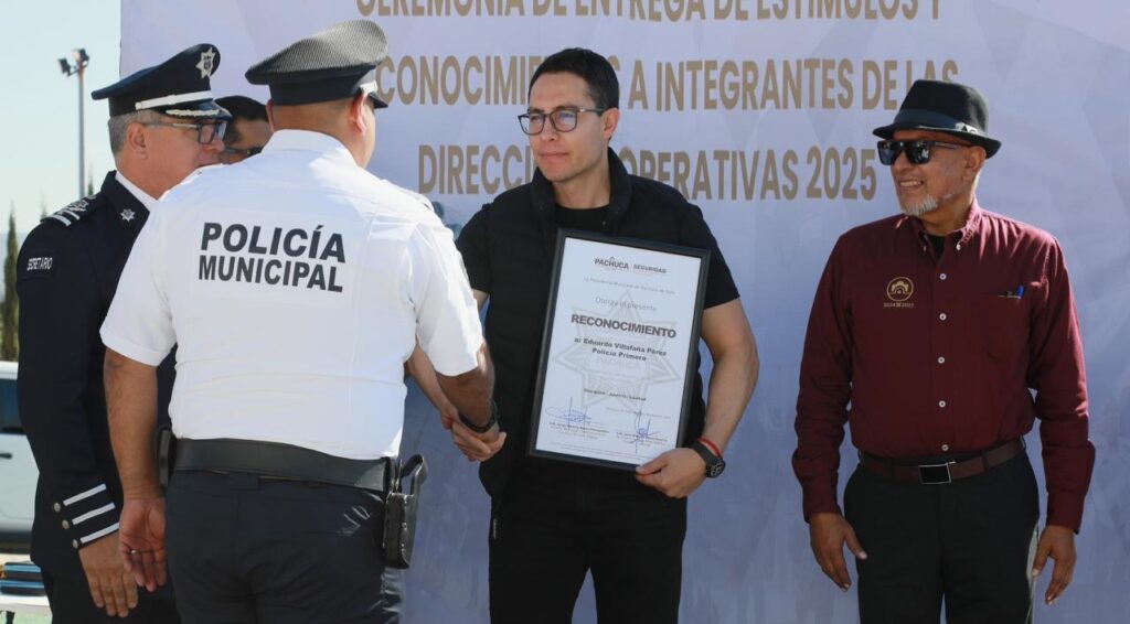 El alcalde de Pachuca, Jorge Reyes, encabezó una ceremonia de reconocimiento a integrantes de la Secretaría de Seguridad Pública, Tránsito y Vialidad, en la que se destacó la trayectoria, disciplina y compromiso de quienes trabajan diariamente por la seguridad de la ciudad.