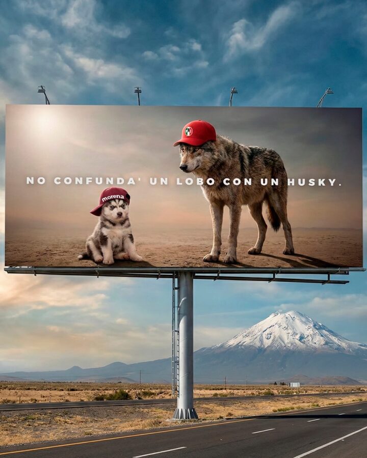 La campaña se ha difundido principalmente en plataformas como Facebook, Instagram y X, mediante imágenes y videos de alto impacto simbólico. En una de las piezas más visibles se muestra a un lobo adulto con emblemas del PRI frente a un cachorro tipo husky identificado con Morena, acompañados del mensaje “No confundas un lobo con un husky”, en alusión a una supuesta diferencia entre experiencia y apariencia en el ejercicio del poder.