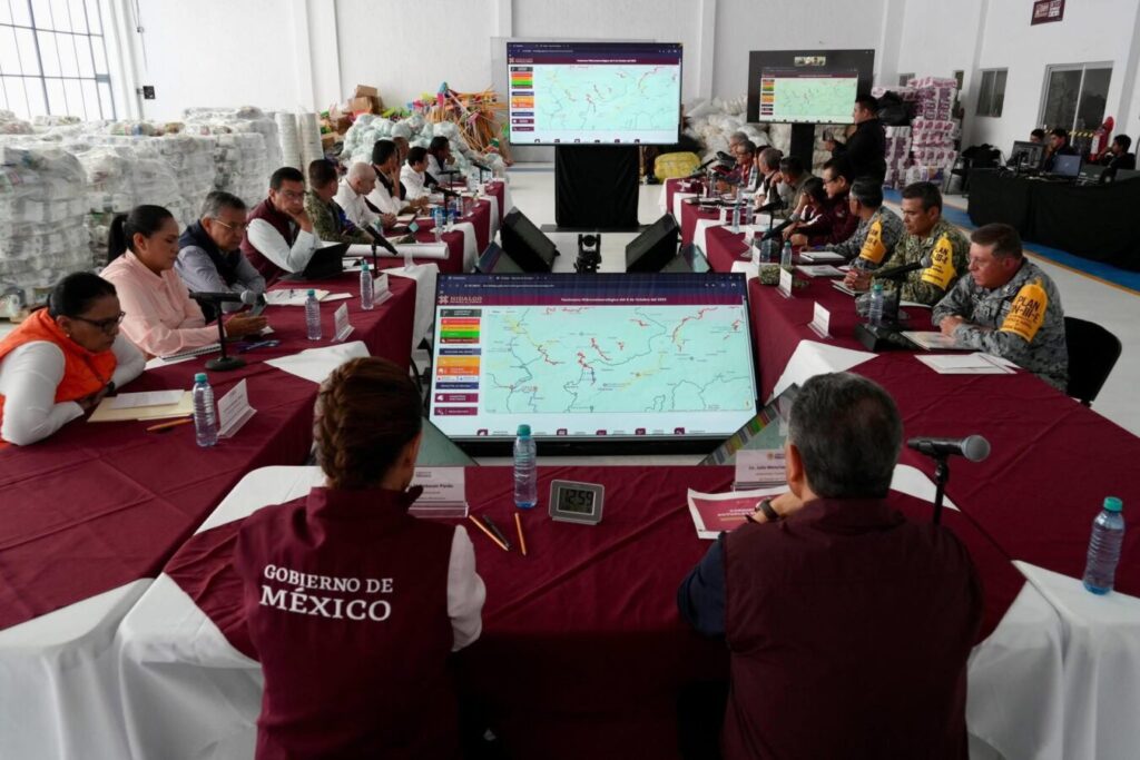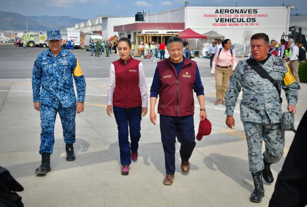 Desde el Centro de Acopio instalado en el Aeropuerto Nacional “Juan Guillermo Villasana”, la presidenta y el mandatario estatal revisaron las labores logísticas que permiten canalizar víveres, insumos y ayuda humanitaria a las zonas más dañadas por el fenómeno meteorológico.