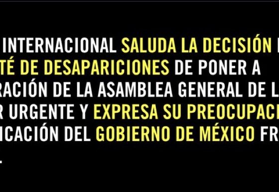 Amnistía Internacional respalda a la ONU; advierte crisis de desapariciones en México.