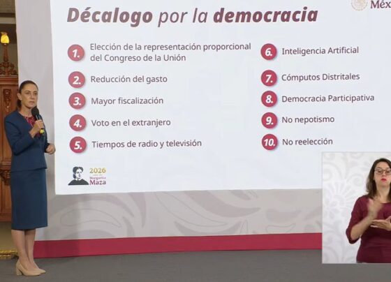 Con error ortográfico, presenta Sheinbaum el “decálogo” de la reforma electoral.